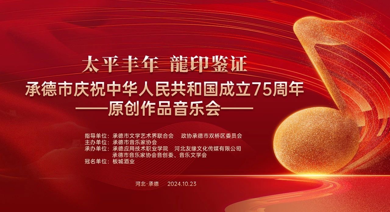 謳歌新時(shí)代、禮贊新中國(guó);10月23日,為慶祝中華人民共和國(guó)75周年華誕,板城酒業(yè)聯(lián)合承德市音樂家協(xié)會(huì)舉辦“太平豐年、龍印鑒證——承德市慶祝中華人民共和國(guó)成立75周年原創(chuàng)作品音樂會(huì)”,用音樂歌頌偉大的祖國(guó)和偉大的黨。