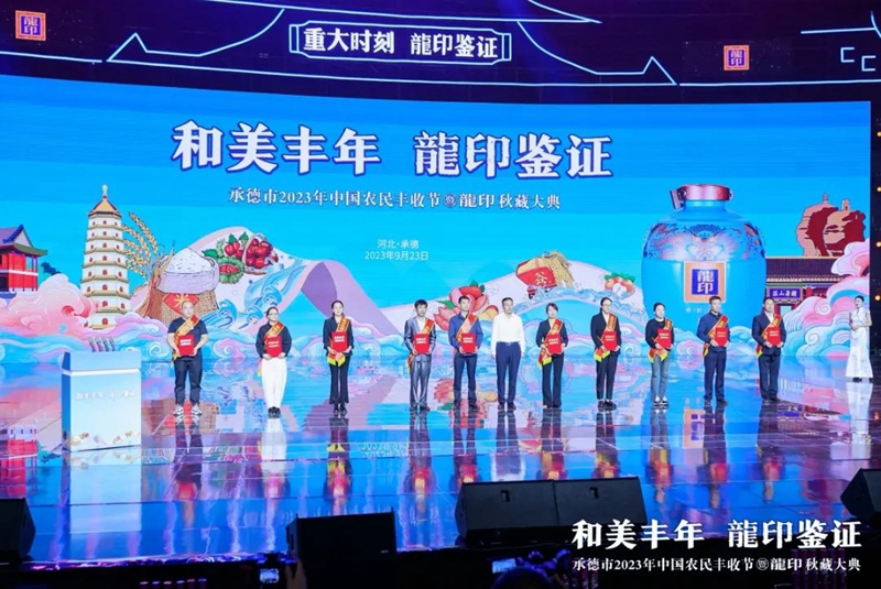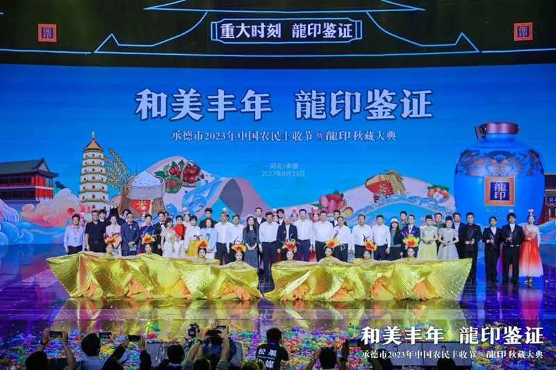 禮贊豐收年,共品龍印酒。9月23日,由承德市人民政府、河北廣播電視臺(tái)(集團(tuán))聯(lián)合主辦;由承德縣人民政府、承德市農(nóng)業(yè)農(nóng)村局、承德市體育局協(xié)辦;由承德縣農(nóng)業(yè)農(nóng)村局、河北板城酒業(yè)、河北廣電廣告有限責(zé)任公司承辦的承德市2023年中國(guó)農(nóng)民豐收節(jié)暨龍印秋藏大典在承德市奧體中心圓滿(mǎn)落下帷幕。板城酒業(yè)駕起卓越追求的時(shí)代巨輪,乘歷史文脈之槳,掌匠心傳承之舵,揚(yáng)帆起航,再次譜寫(xiě)龍印“秋藏大典”品牌文化IP的時(shí)代篇章。