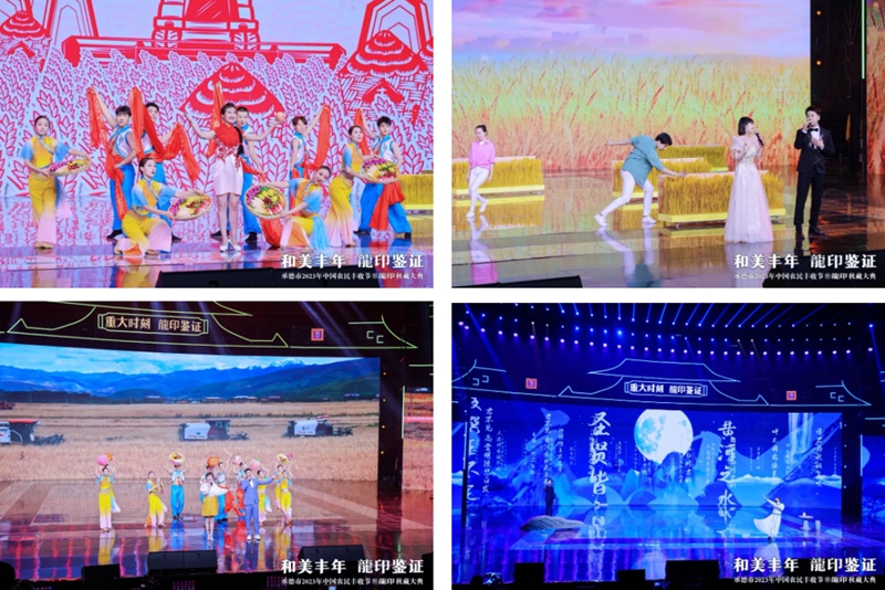 活動(dòng)中,情景劇《歷史上的1717》通過(guò)舞臺(tái)技術(shù)實(shí)現(xiàn)康熙皇帝與趙弘燮跨時(shí)空對(duì)話(huà),再現(xiàn)了“金木水火土,板城燒鍋酒”的傳奇故事,在無(wú)數(shù)板城人心中蕩起層層漣漪;《豐收中國(guó)》、《風(fēng)吹麥浪》、《豐收進(jìn)行曲》等歌曲唱盡了農(nóng)民的喜悅,以及他們砥礪奮進(jìn)的決心。