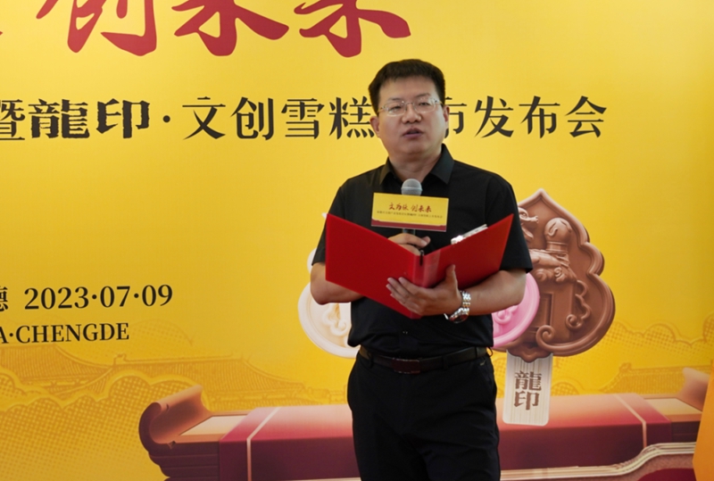 承德市總工會主席關繼高向前來參加本次發(fā)布會的各位領導、各位來賓表示熱烈的歡迎與衷心的感謝;本次承德市文創(chuàng)產業(yè)發(fā)展論壇旨在進一步提升承德市文旅內涵,激發(fā)文旅消費潛能,對承德市皇家文化、飲食文化、酒文化、旅游康養(yǎng)文化進行深入探討,促進跨界融合,助力傳統文化創(chuàng)新表達;板城酒業(yè)推出龍印·文創(chuàng)雪糕,必將為承德市文化、文創(chuàng)產業(yè)的繁榮發(fā)展以及建設國際生態(tài)旅游城市增添濃墨重彩的一筆;希望板城酒業(yè)能夠繼續(xù)秉承冀酒振興使命,為全力書寫“生態(tài)強市、魅力承德”現代化新篇章作出更大貢獻!
