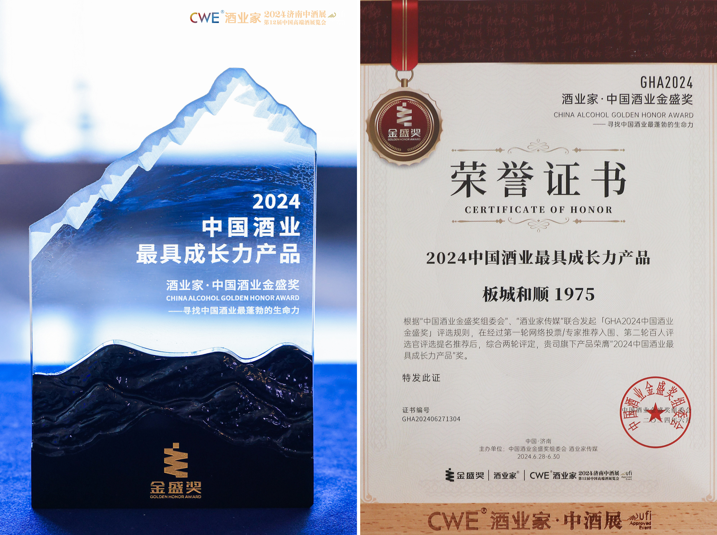 板城和順1975在本次比賽中榮獲“2024中國酒業最具成長力產品”。此項榮譽的獲得,是白酒行業與白酒市場對板城和順1975品質的認可與鼓勵。