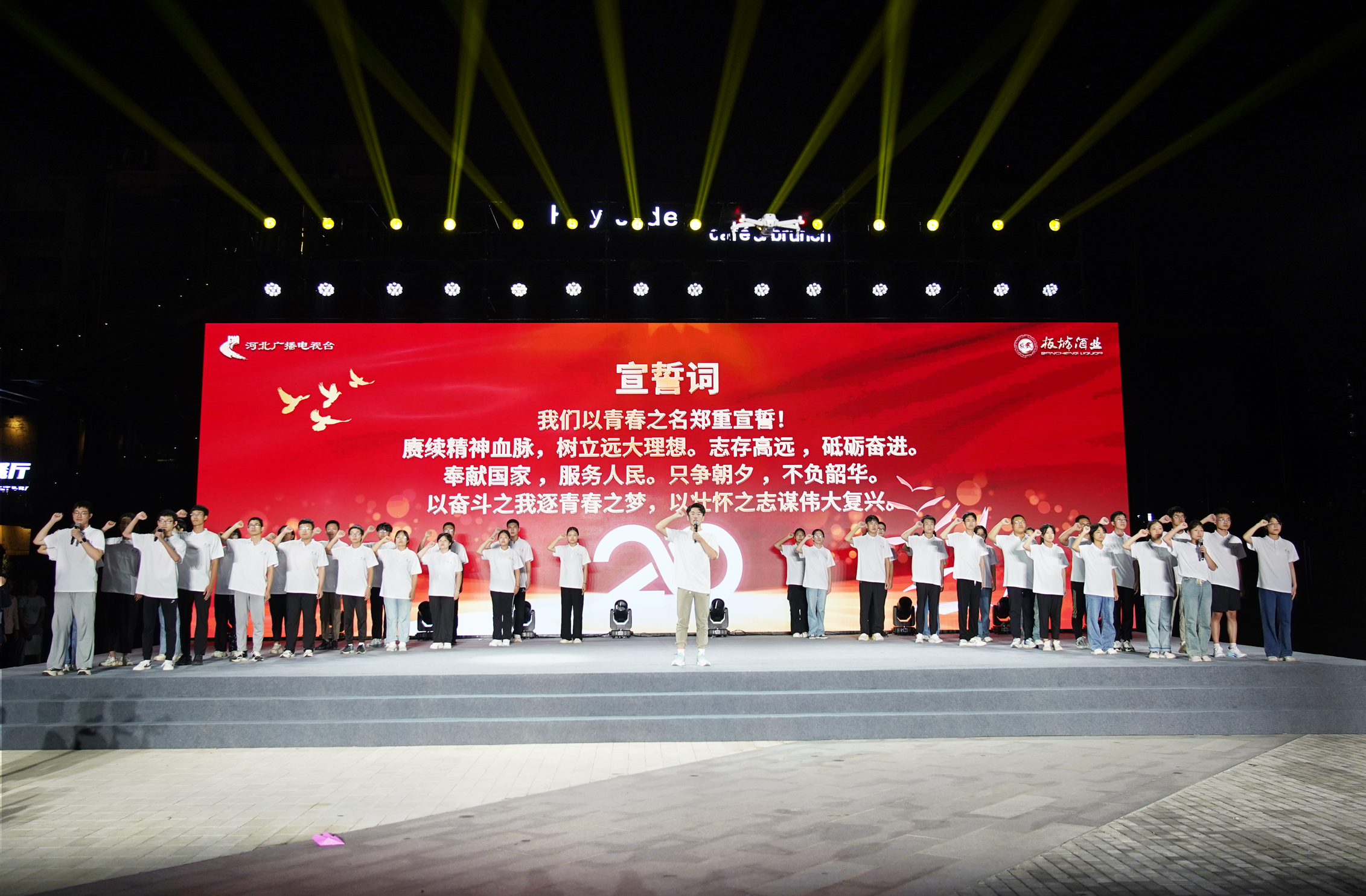 活動中,共青團河北省委副書記龔磊,河北廣播電視臺副總編輯邊宇峰,共青團石家莊市委副書記李慶赟,石家莊文旅投搖滾之城品牌管理有限責任公司副總經理邢哲,板城酒業銷售市場總監王曉波為榜樣學子授旗,鮮紅的旗幟,表達著以奮斗之我逐青春之夢、以壯懷之志謀偉大復興的志向和決心。