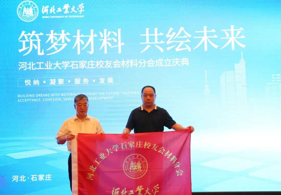河工大石家莊校友會韓杏軍會長為材料分會會長唐永忠授旗