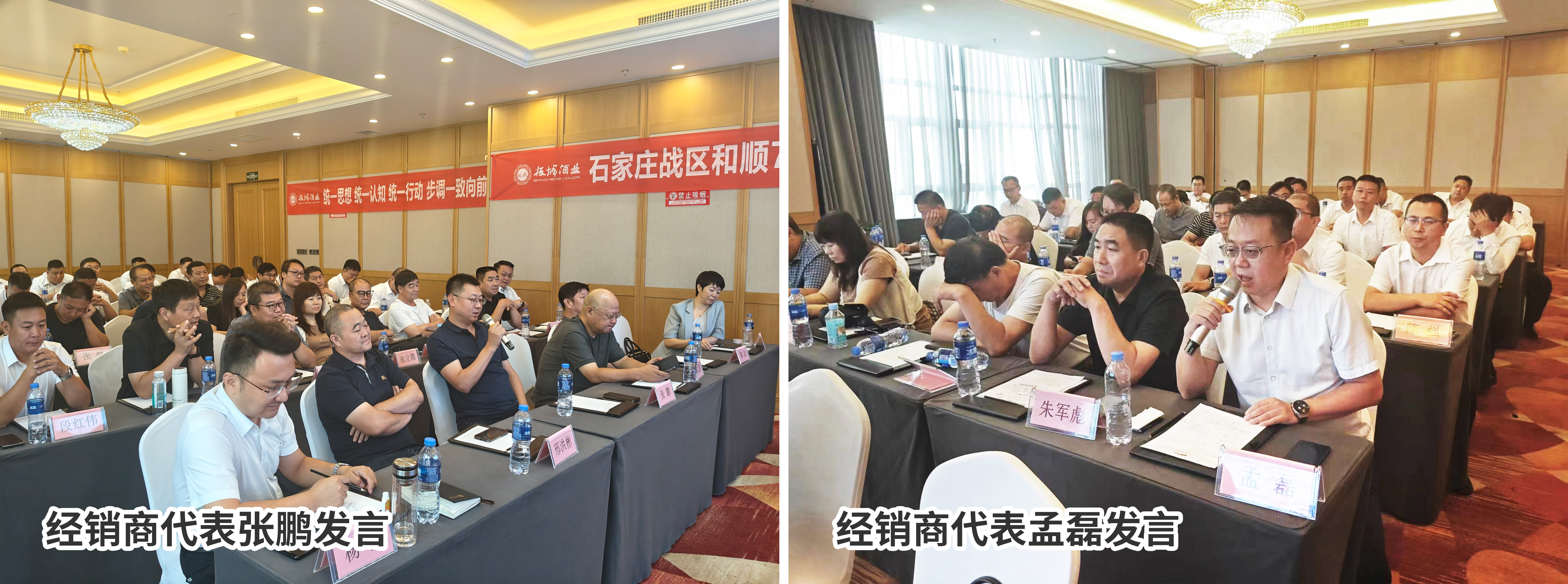 會議中,經(jīng)銷商代表張鵬、孟磊在互動環(huán)節(jié)中進行發(fā)言,他們強調(diào)統(tǒng)一步調(diào),統(tǒng)一行動,相關動作策略一盤棋,加強市場管控,堅決落地相關市場戰(zhàn)略,為實現(xiàn)銷量、利潤新突破,實現(xiàn)石家莊戰(zhàn)區(qū)整體市場的良性發(fā)展而共同努力。