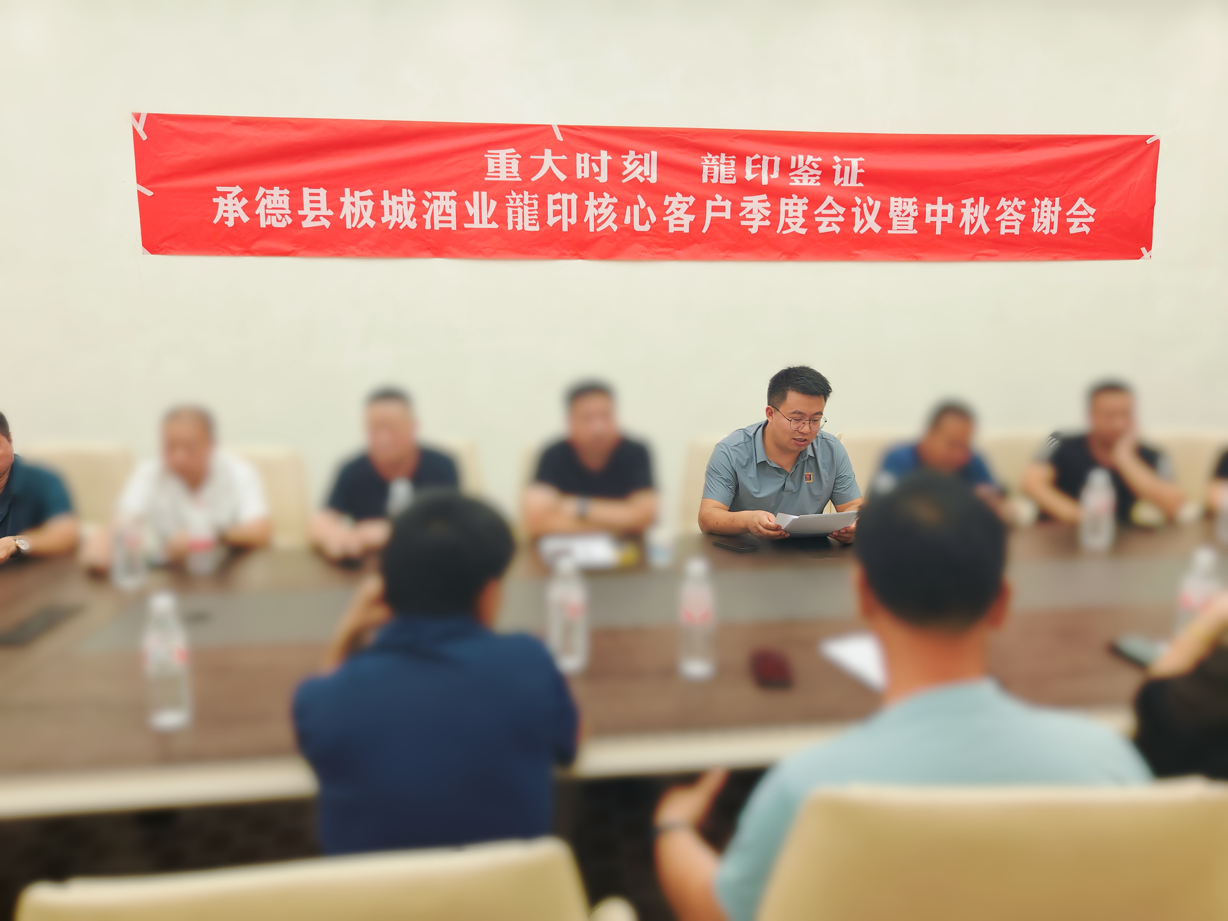 8月31日,承德縣板城酒業龍印核心客戶季度會議暨中秋答謝會圓滿落幕,本次會議圍繞龍印與56和順產品的市場銷售動作事項展開研討,對戰略落地與價格管控等政策進行宣貫,以期打贏下半年度市場銷售關鍵戰役。出席本次活動的領導有:承德戰區縣區龍印部區域經理陶景奇、承德縣龍印部業務經理郭俊杰及承德縣龍印部業務團隊,同時承德縣經銷商、團購商及相關終端店負責人出席本次活動。