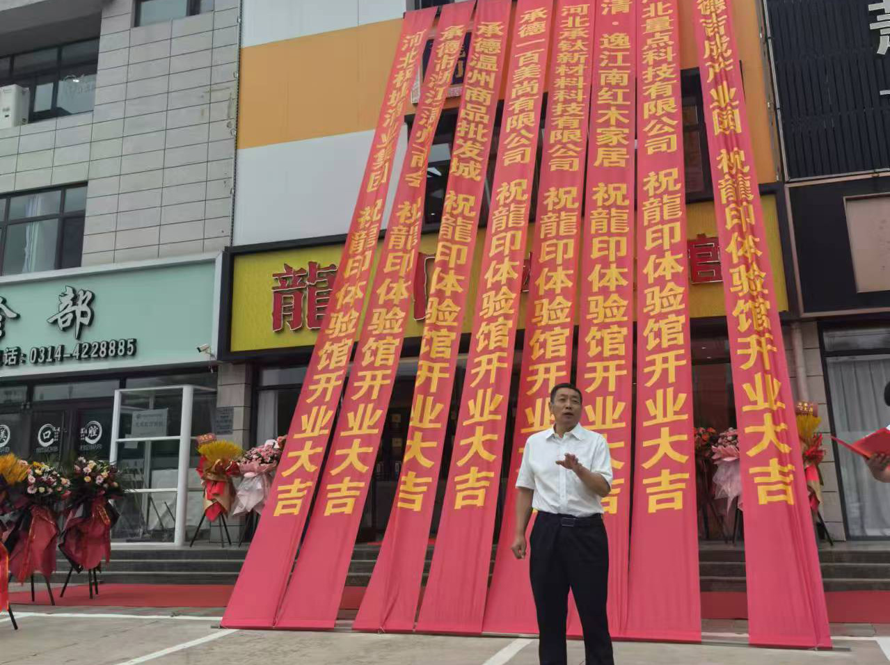 活動現場,由承德市雙灤區龍印體驗館負責人易會讓,承德市雙灤區工商聯主席馬義兵,板城酒業黨委書記、總經理張春生,承德市浙江溫州商會執行會長徐永財一同為開業剪彩,體驗店的開業必將推動“龍印”品牌更加蓬勃發展!