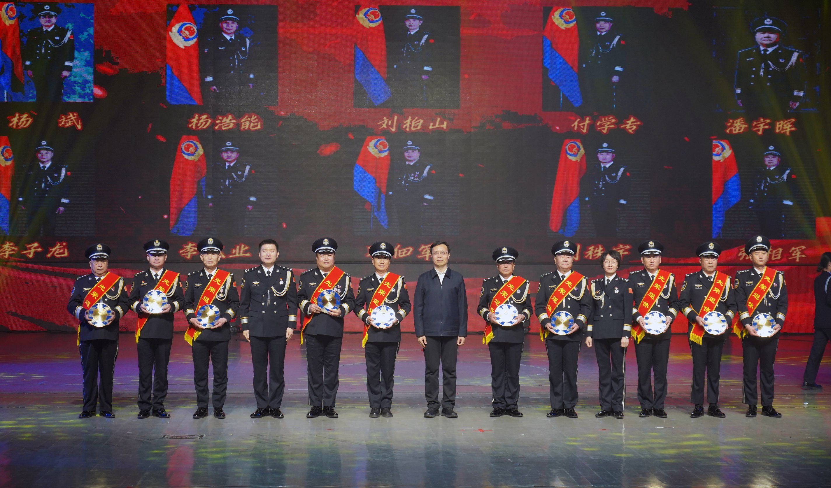 市委常委、政法委書記李曉波,省公安廳二級巡視員賈永華,市政府副市長、市公安局黨委書記、局長康海潮為退休民警頒發退休紀念盤
