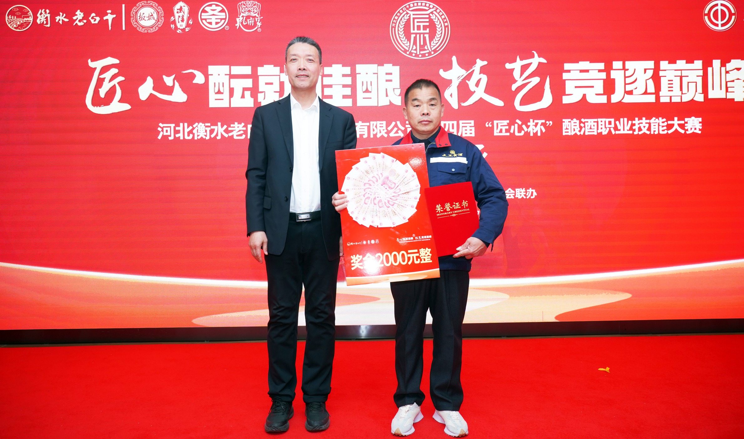 衡水老白干酒業公司工會副主席孔衛東宣讀本次大賽獲獎名單,宣布對獲獎選手進行表彰,大賽中36名優秀選手經過激烈角逐,最終產生“釀酒狀元”1名,“杰出工匠”5名,“技術能手”12名,“優秀選手”18名;本次新增設“匠心傳承獎”1名。