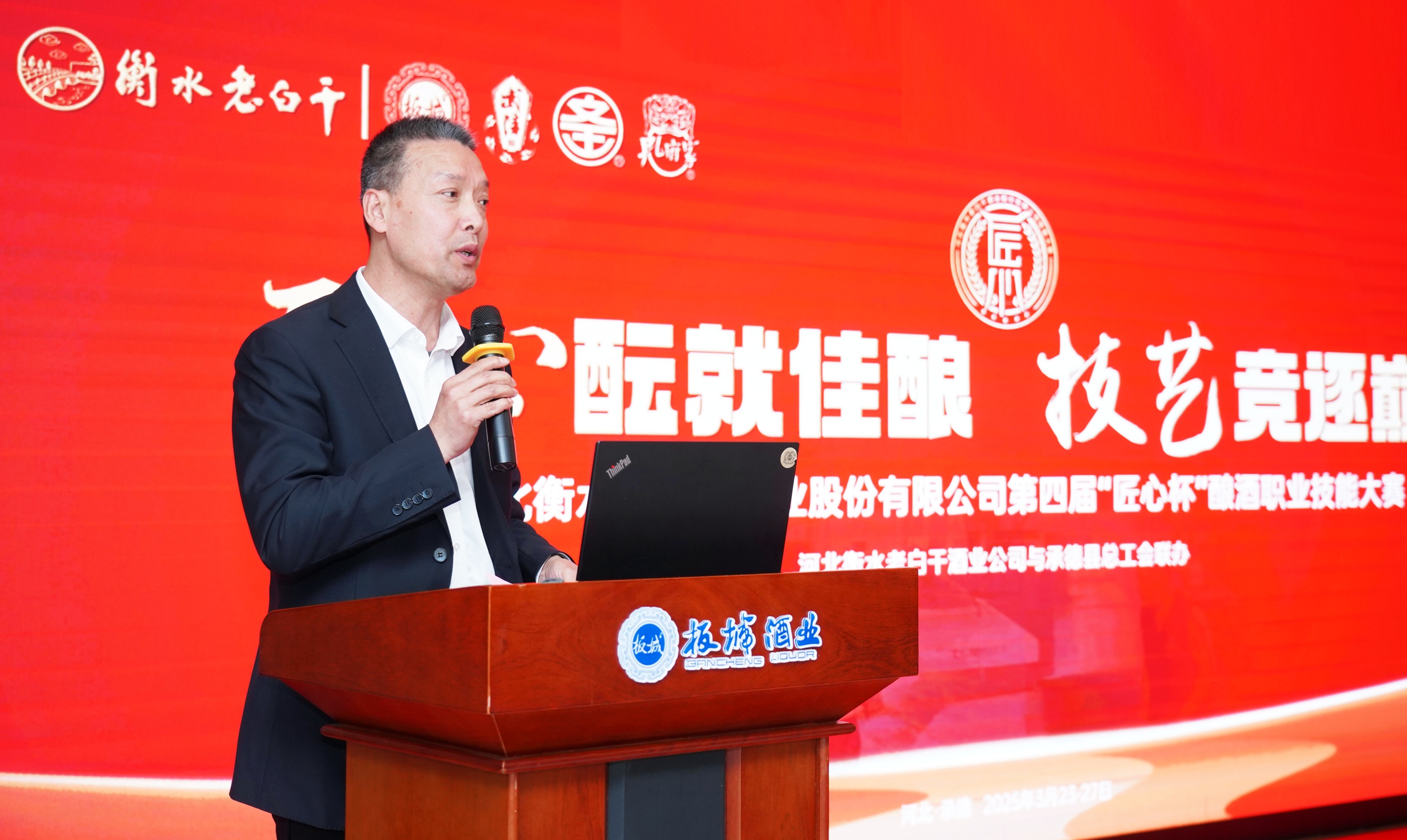 衡水老白干酒業公司副董事長張煜行進行總結講話。張煜行副董事長講到,本屆技能競賽是全體釀酒人通過備賽、參賽、觀賽,激發了廣大職工主動學習技術、持續提升技能的內生動力,促進了多種香型工藝的對比、交流、融合,為技能人才提供了展示技藝的舞臺,為企業發展壯大了技術骨干力量。自首屆“匠心杯”釀酒技能大賽舉辦以來,通過連續四屆的堅持與創新,這一系列賽事不僅搭建了技藝切磋的平臺,更在多個方面取得了顯著成效:一是釀酒技藝更加精湛;二是工藝管理更加成熟;三是基酒質量明顯提高;四是團隊凝聚力更加提升;五是技術交流更加充分。