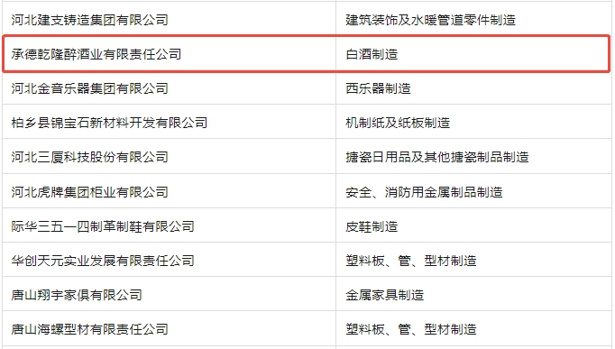 近日,河北省輕工行業協會日前發布了我省2024年度輕工業50強企業榜單。三河匯福糧油集團有限公司、君樂寶乳業集團股份有限公司、今麥郎食品股份有限公司、邯鄲美的制冷設備有限公司、秦皇島金海糧油工業有限公司、風帆有限責任公司等企業位居前列,河北板城酒業(承德乾隆醉酒業有限責任公司)再次實力入選2024年度河北省輕工業50強企業榜單。