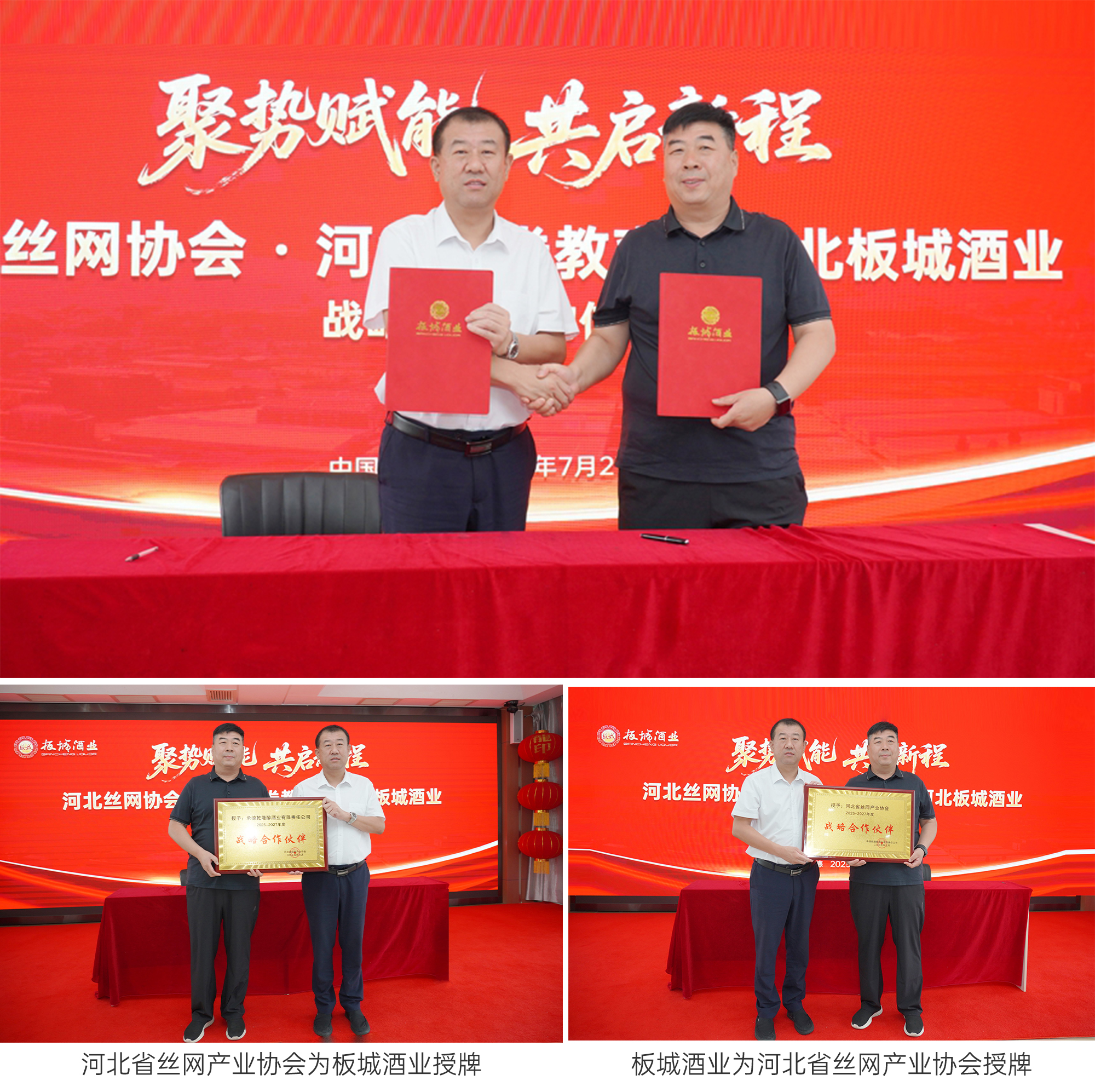 河北省絲網(wǎng)產(chǎn)業(yè)協(xié)會(huì)與板城酒業(yè)公司簽署戰(zhàn)略合作。