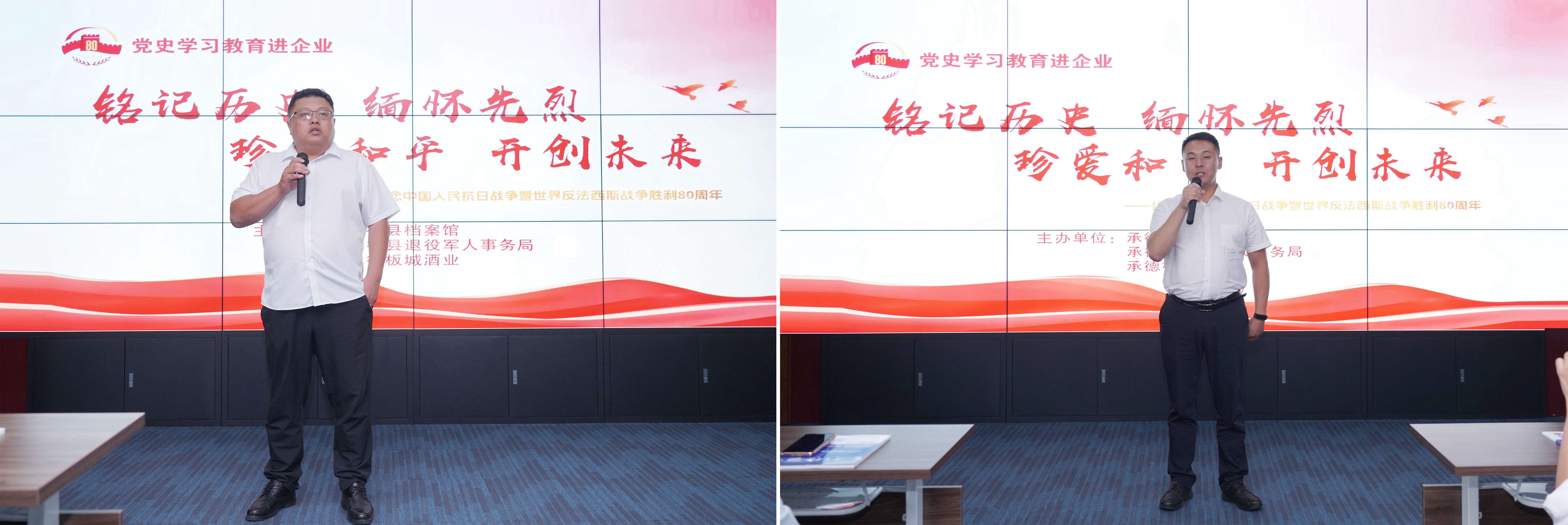 在紀念中國人民抗日戰(zhàn)爭暨世界反法西斯戰(zhàn)爭勝利80周年之際,8月20日,板城酒業(yè)聯(lián)合承德縣檔案館、承德縣退役軍人事務局舉辦本次黨史學習教育主題活動。