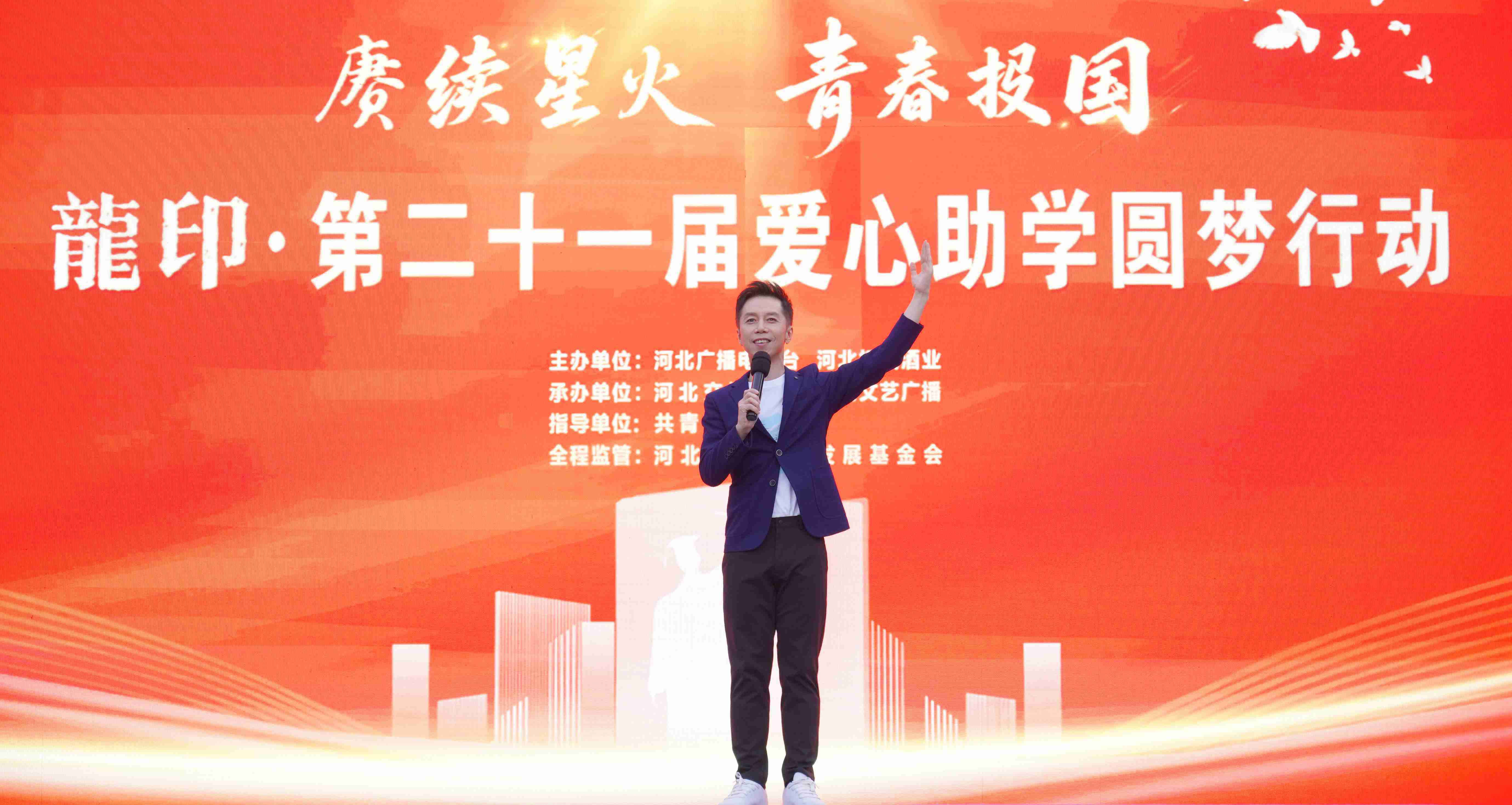 由河北廣播電視臺(集團)黨委副書記,總編輯、總經理肖鈞,共青團河北省委副書記龔磊,板城酒業黨委書記、總經理張春生上臺給予學子們祝福與期望,并向應屆學子代表授予象征著責任與夢想的旗幟,寓意著廣大學子能夠立大志、明大德、成大才、擔大任,將愛心不斷傳承,肩負民族的希望。