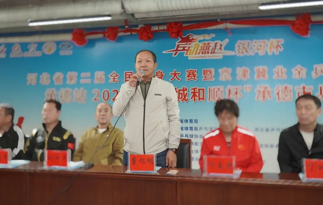 板城酒業承德南部戰區和順部經理、本次賽委會副主任胡聚偉在致賀辭中講到:“乒乓球是中國的‘國球’,是全民健身的重要載體,更是連接情感的紐帶。本次賽事不僅是一場體育競技的盛會,更是一次跨越京津冀的友誼交流。各地健兒以球會友、切磋技藝,必將進一步推動區域體育文化交流,為全民健身事業注入新的活力。